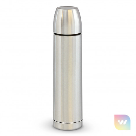 Classic 750ml double wall, vacuum insulated stainless steel flask which will keep drinks cold for 24 hours or hot for up to 12 hours. It has convenient push button operation and a screw on cup. The flask laser engraves to a natural etch and is BPA-free. This product is not dishwasher safe and handwashing is recommended.