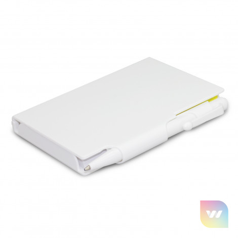 Pocket-size notebook in a compact plastic case which has a pen that locks the case closed when it is inserted in the pen holder. It has a pad of adhesive notes and a pad of adhesive flags in four bright colours.