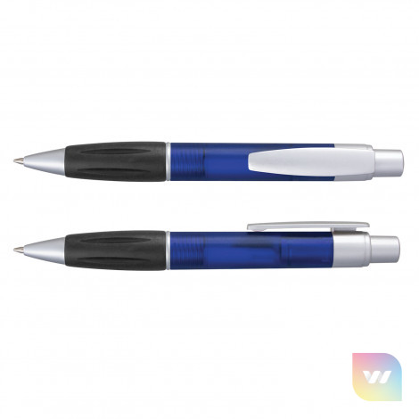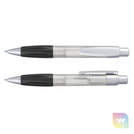 Retractable plastic ball pen with a soft rubber grip, a frosted translucent barrel and metallic silver trim. It has a blue large volume refill with 1800 metres of German manufactured Dokumental ink and can be presented in an optional pen sleeve.