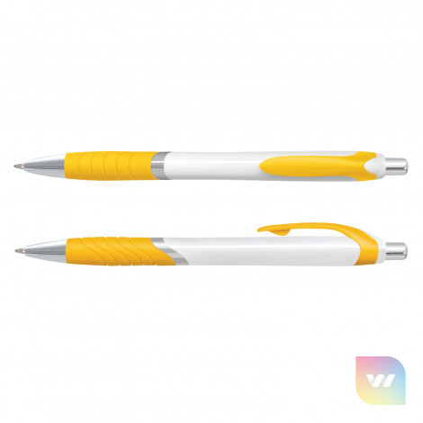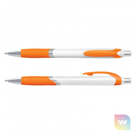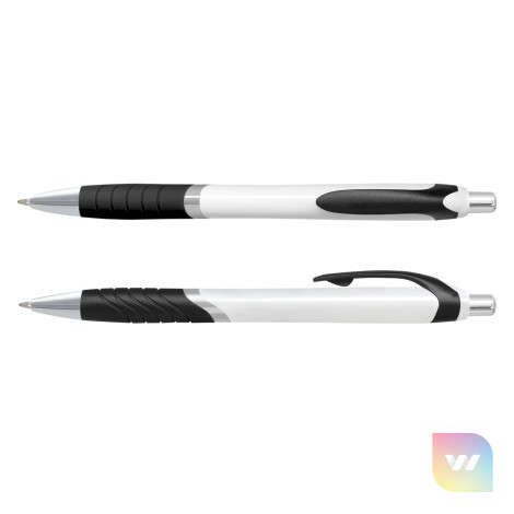 Retractable plastic ballpoint pen with a white barrel, a soft-touch grip and shiny chrome trim. It has a black or blue refill with 1200 metres of German manufactured Dokumental ink and can be presented in an optional pen sleeve.