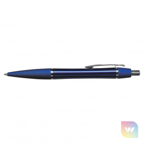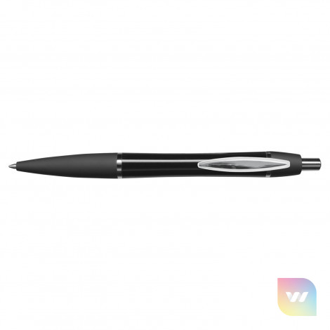 Retractable aluminium ballpoint pen with a lacquered barrel, a soft-touch grip and shiny chrome accents. It has a black large volume refill with 1200 metres of writing ink and can be presented in an optional pen sleeve.
