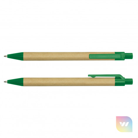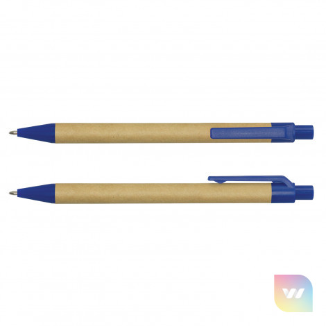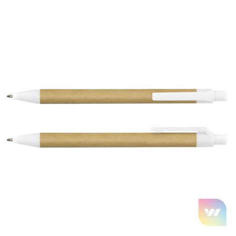 Retractable ballpoint pen with a recycled cardboard barrel. It has a blue refill with 1000 metres of German manufactured Dokumental ink and it can be presented in an optional pen sleeve.