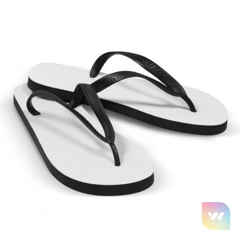 Comfortable flip flops which are manufactured specifically for high definition spot colour or full colour branding. They are available in extra-small (for children), small, medium, large and extra-large sizes.
