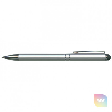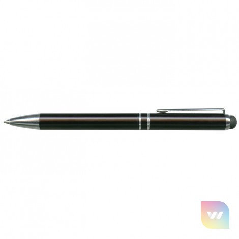 Twist-action recycled aluminium ballpoint pen with an anodised barrel, shiny chrome accents and a stylus for use with touch screens. It has a black refill with 800 metres of German manufactured Dokumental ink and can be presented in an optional pen sleeve.