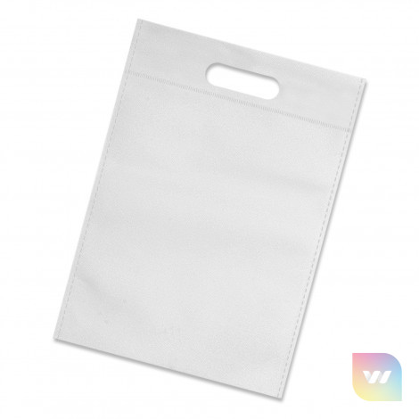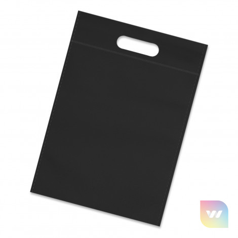 Small heat-sealed tote bag with die cut hand grips which is designed to hold A4 documents and catalogues etc. It is manufactured from 80gsm non-woven polypropylene material.