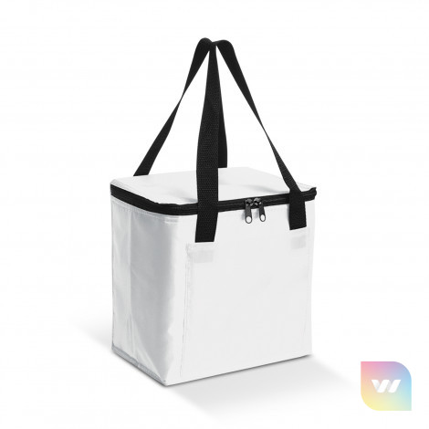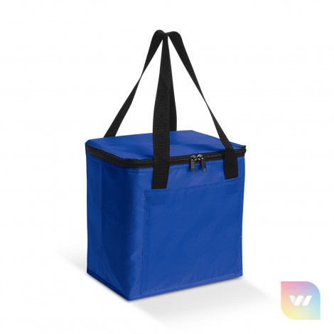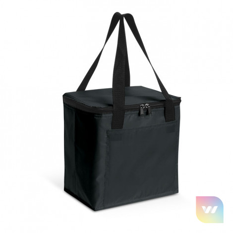 Medium-size 6L cooler bag which is manufactured from 210D polyester with aluminium foil laminated PE foam insulation. It has a zippered top closure, reinforced woven handles and a large front slip pocket.