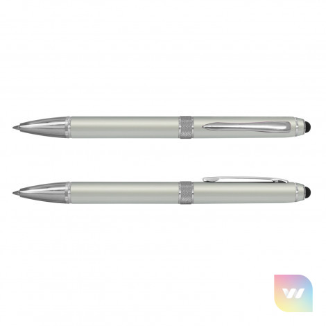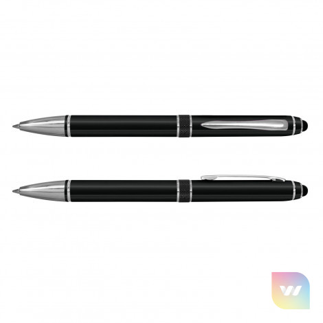 Twist-action aluminium ballpoint pen with a shiny anodised barrel, shiny chrome accents and a stylus. It has a black large volume refill with 800 metres of German manufactured Dokumental ink and can be presented in an optional pen sleeve.