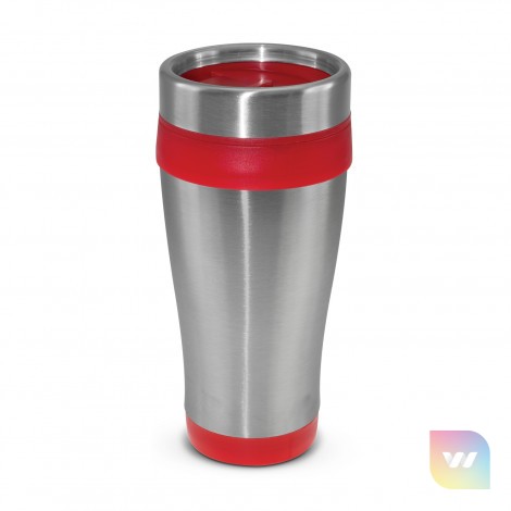 Contoured 350ml double wall travel mug which will keep drinks hot for longer. It has a stainless steel outer wall and a polypropylene inner wall. Aspen has a secure screw on lid with a splashproof sliding closure. It laser engraves to a natural etch and is BPA-free. This product is not dishwasher safe and handwashing is recommended.