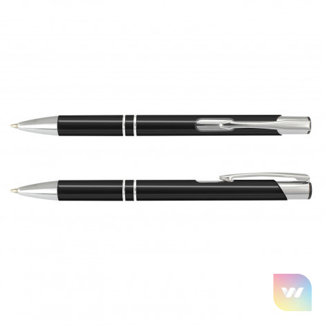 Retractable aluminium ballpoint pen with a shiny anodised coloured barrel and shiny chrome accents. It has a large volume refill with 1200 metres of blue or black German manufactured Dokumental ink. Panama can be presented in an optional pen sleeve. This product is also available on indent with a lead time of 20 weeks.