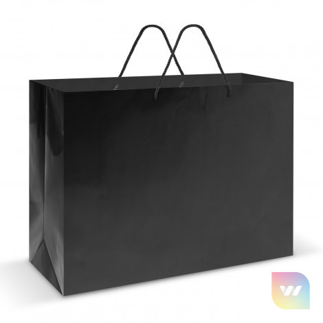 Extra-large carry bag with strong woven polypropylene rope handles. It is manufactured from gloss laminated 157gsm art paper.