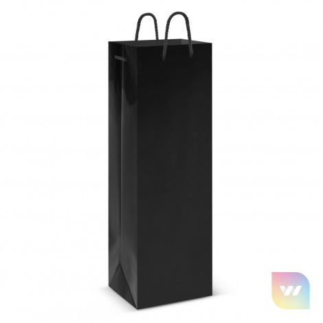 Laminated wine carry bag with strong woven polypropylene rope handles. It is manufactured from gloss laminated 157gsm art paper.