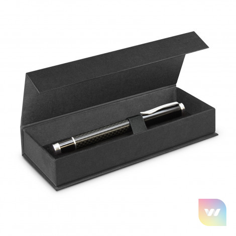 Luxury rolling ball pen with a lacquered brass cap, a genuine carbon fibre barrel and shiny chrome accents. It has a black rolling ball refill with 500 metres of writing ink that will not dry out even if the cap isn't replaced after use. Statesman can be presented in an optional black gift box.