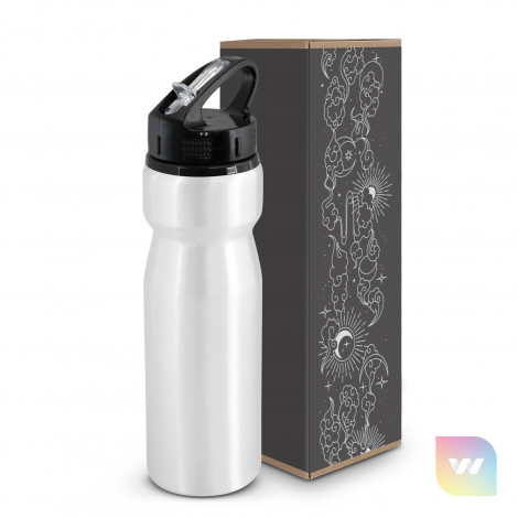 Smart BPA-free 750ml aluminium drink bottle which has a secure screw on lid with a flip out drinking valve and a carry handle. An optional natural gift box is available on request. This product is not dishwasher safe and handwashing is recommended.
