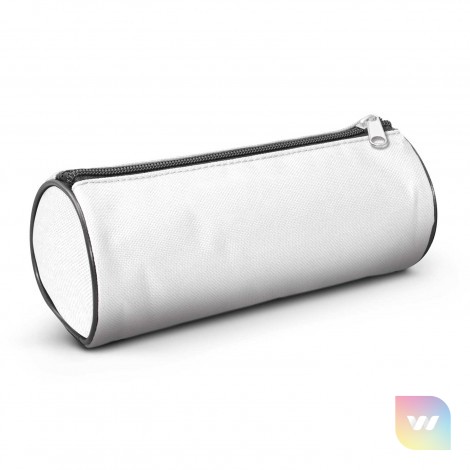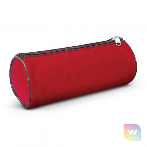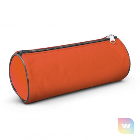 Large round pencil case which is manufactured from 600D polyester with a foam padded inner lining and a zippered closure.