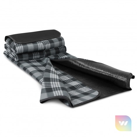 Smart 1200mm x 1370mm picnic blanket that folds into a compact unit which has a Velcro closure and a carry handle. It is manufactured from woven acrylic with a water-resistant PE backing.