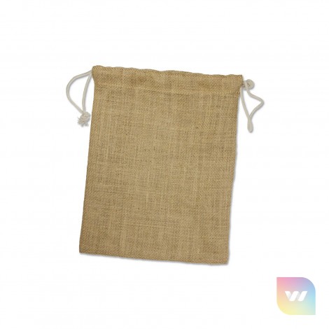 Natural jute drawstring gift bag with cotton drawstrings and the choice of three sizes.