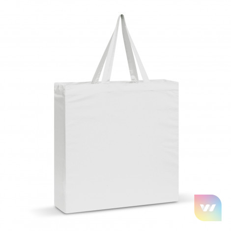 Reusable tote bag with a gusset which is manufactured from 130gsm cotton.