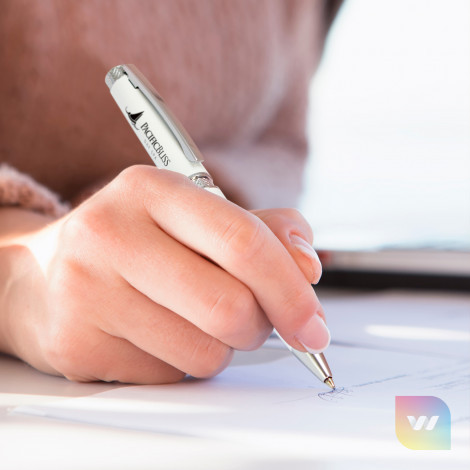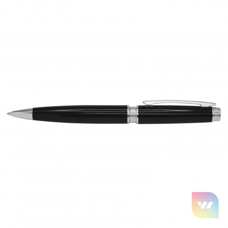 Twist action brass ballpoint pen which has a lacquered barrel and shiny chrome accents. It has a black large volume refill with 1600 metres of writing ink and can be presented in an optional gift box.