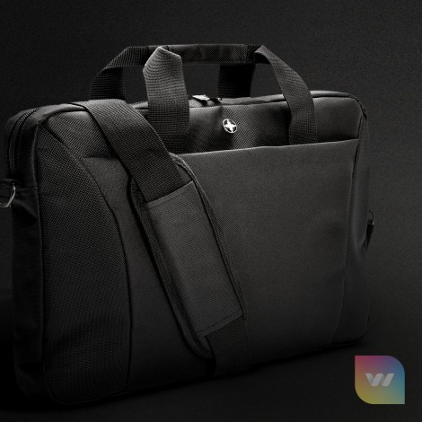 Superb Swiss Peak laptop bag which is manufactured from a combination of 600D and 1680D polyester. It has a padded laptop compartment, a tablet sleeve and a padded woven shoulder strap which is fully adjustable and detachable. Other features include woven carry handles with a Velcro cuff, a zippered front organiser pocket and a rear luggage sleeve that slides over the handle of a rolling suitcase.