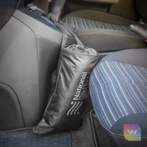 Reusable rubbish bag which is ideal for use in cars, boats, trucks, heavy machinery cabs etc. It is manufactured from robust 210D polyester and features a secure Velcro base closure which makes emptying it very easy. Other features include an adjustable woven strap with a snap lock release and an expandable opening which allows the bag to hold larger items like bottles and cans. A simple instruction leaflet is included.