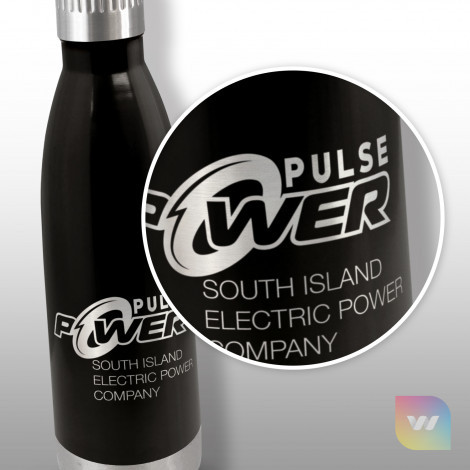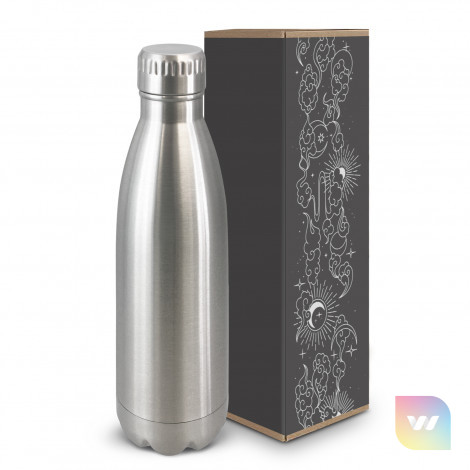 Trendy 700ml stainless steel drink bottle with a timeless design and a secure screw on lid. The Mirage bottle laser engraves to a shiny steel finish, except for the silver bottle which engraves to a natural etch. Mirage is BPA free and can be presented in an optional natural gift box or gift tube. This product is not dishwasher safe and handwashing is recommended.