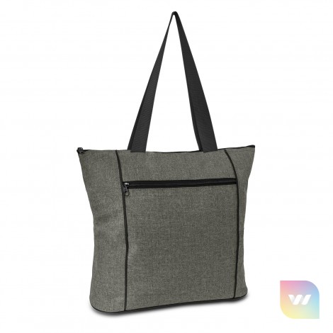 Premium tote bag with a rounded gusset and a sewn in base for added capacity. It is manufactured from poly-canvas with an on-trend heather style finish. Other features include a zippered front pocket, a secure zippered top closure and long woven carry handles so it can be comfortably carried on a shoulder.