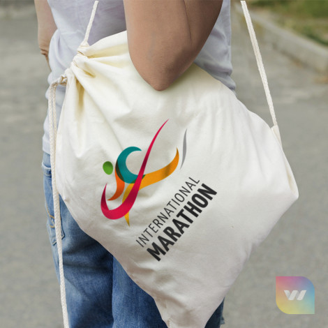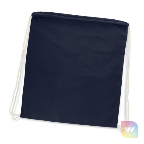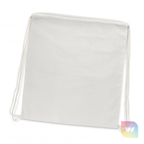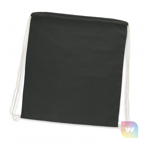 Drawstring backpack which is manufactured from 120gsm cotton. The black, royal blue, charcoal, navy and white bags have white drawstrings and the natural backpack has natural drawstrings. Cotton is easy to wash ensuring the backpack is always clean.
