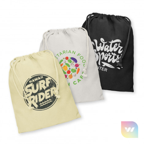 Medium size drawstring gift bag that is manufactured from 135gsm cotton.