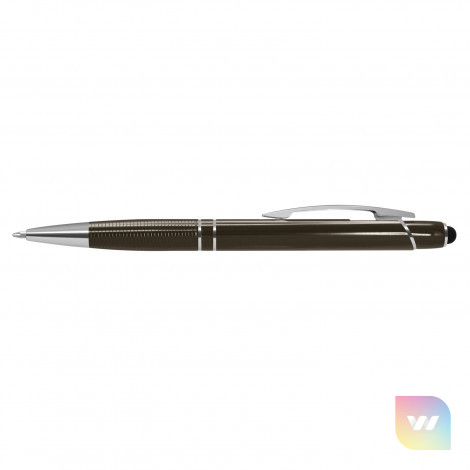 Retractable aluminium ballpoint pen with shiny anodised coloured barrels and a matte anodised silver barrel, all of with shiny chrome trim. It has a stylus and a black refill with 800 metres of German manufactured Dokumental ink. Dream can be presented in an optional pen sleeve.