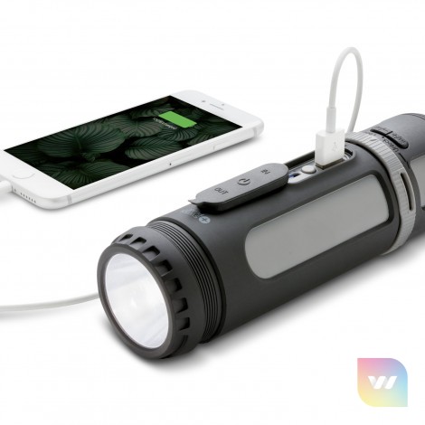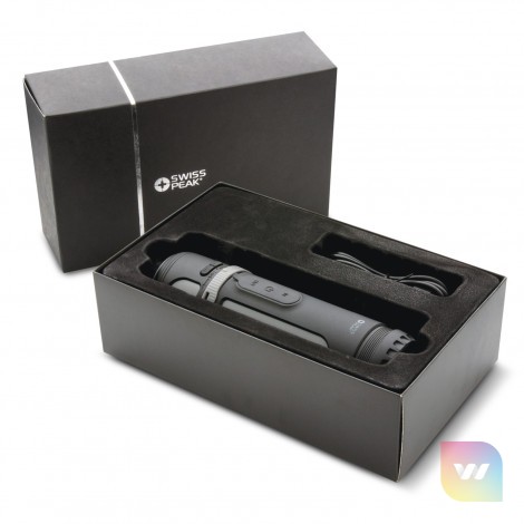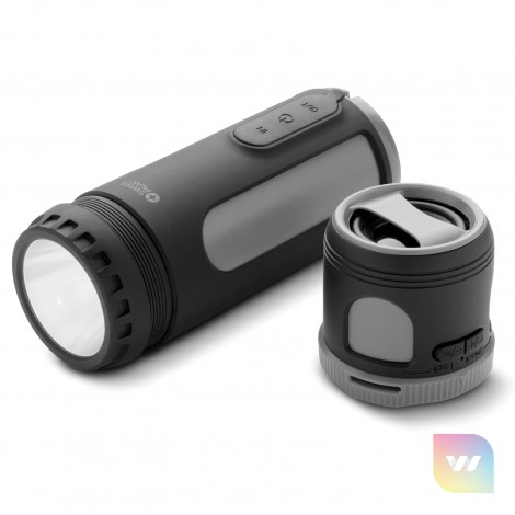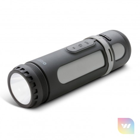 The unique Swiss Peak 4-in-1 Speaker is an essential multi-purpose device for camping, tramping, hunting, boating, barbeques, outdoor events or at the beach. The main unit includes a power bank with a 4400mAh rechargeable lithium ion battery that can be used for charging phones etc. Also included is a 3W Bluetooth speaker which can be connected via the main unit to the lithium ion battery and it will play music for an incredible 18 hours. The main unit is rain and dust proof and has a 250 lumen LED lantern as well as a four-function torch. It is presented in a delightful Swiss Peak gift box with a Micro-B USB cable and an instruction leaflet.