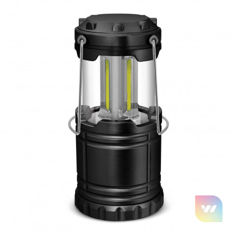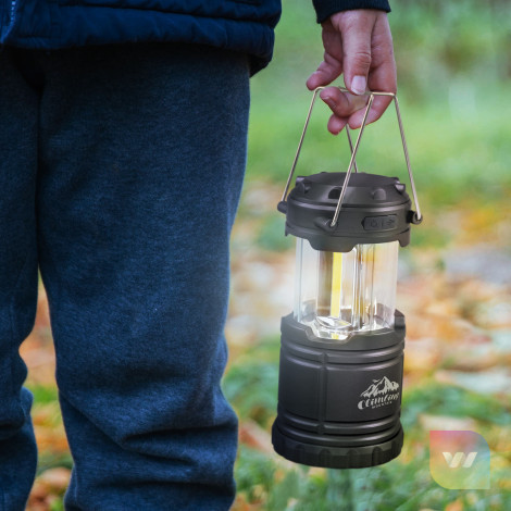 Extremely bright lantern that is powered by three super bright light modules. Aurora uses radical COB (Chip-on-Board) technology which increases both the light intensity and the battery life. Simply pull the lantern open to operate and close to turn the light off. It has carry handles which fold away when not in use and it uses three AA batteries which are included.