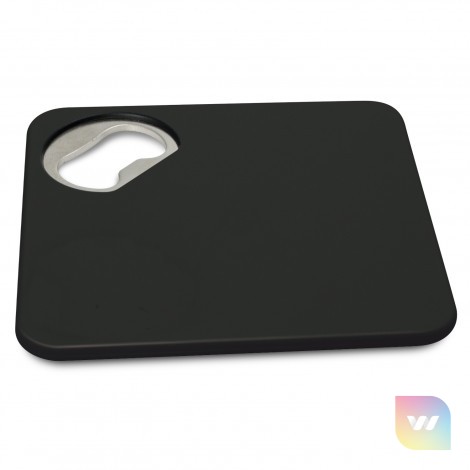 Handy plastic coaster with a built-in bottle opener. It has a soft non-slip and non-marking foam base.