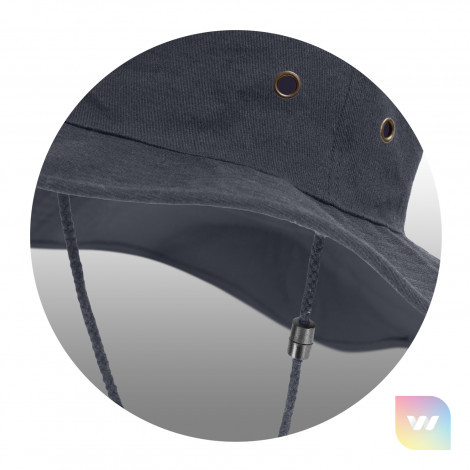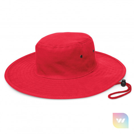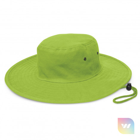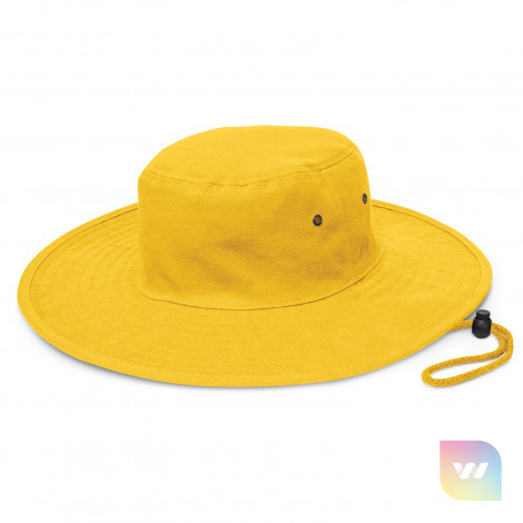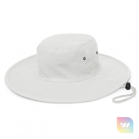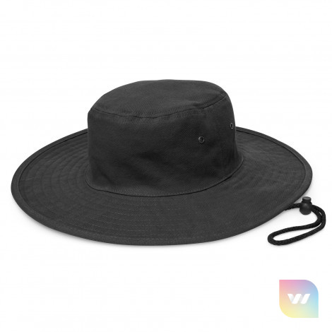 Popular wide brim sun hat which is made from cotton twill. The hat's material provides excellent UPF50 protection from the sun and complies with AS/NZS standards for sun protection. Cabana Wide Brim Hat is available in three sizes, including a child's size. It features a sweatband, smart gunmetal eyelets and a woven chin strap which has a breakaway safety clip and a sliding adjustment toggle.