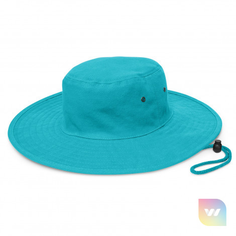 Popular wide brim sun hat which is made from cotton twill. The hat’s material provides excellent UPF50 protection from the sun and complies with AS/NZS standards for sun protection. Cabana Wide Brim Hat is available in three sizes, including a child’s size. It features a sweatband, smart gunmetal eyelets and a woven chin strap which has a breakaway safety clip and a sliding adjustment toggle.