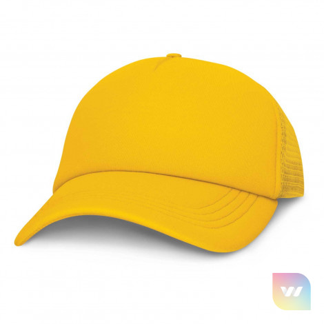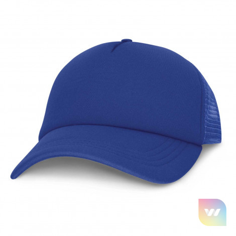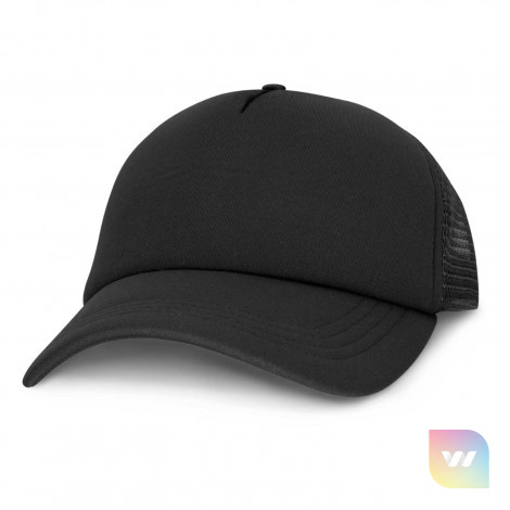 Stylish structured five panel trucker cap with a padded polyester front and breathable mesh panels on the side and back. It has a pre-curved peak, a sweatband and an adjustable snap back closure which allows one size to fit most people.
