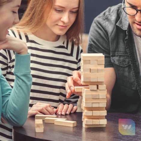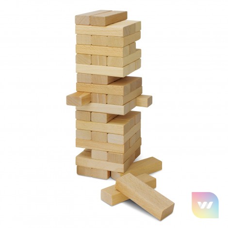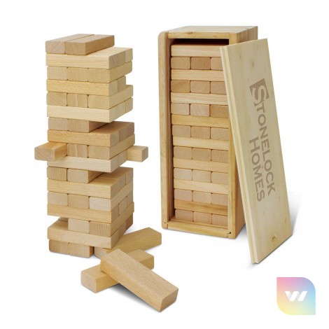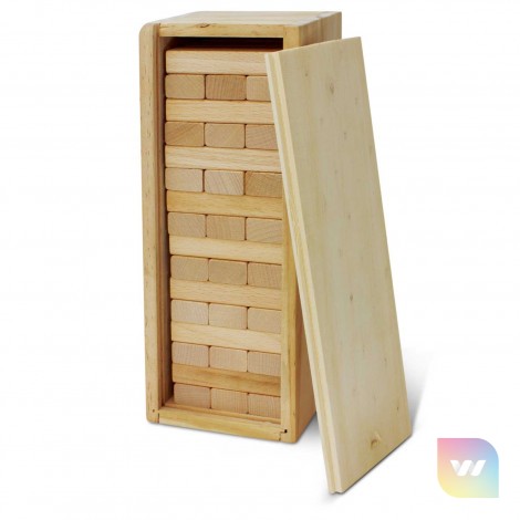 Tumbling Tower is a game of physical skill where a tower of 48 wooden blocks is constructed and players take turns removing one block at a time without causing the tower to fall. The game is beautifully presented in a wooden box with a tower stacker and instructions. Wood is a natural material which produces unavoidable variances in the grain pattern, colour and branding.