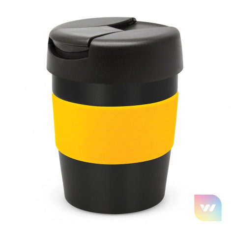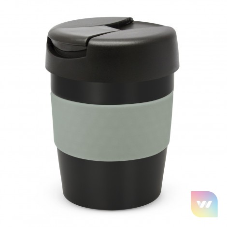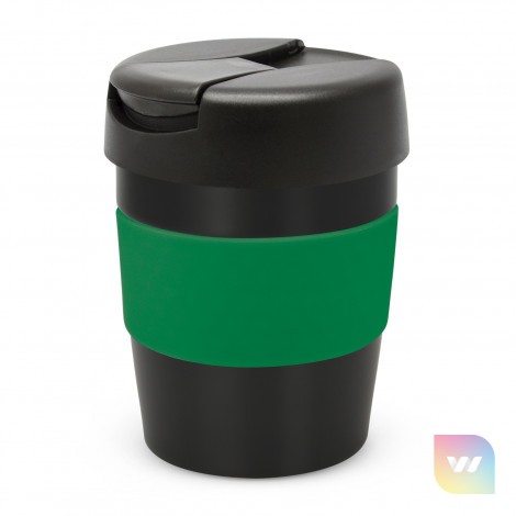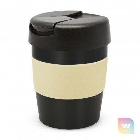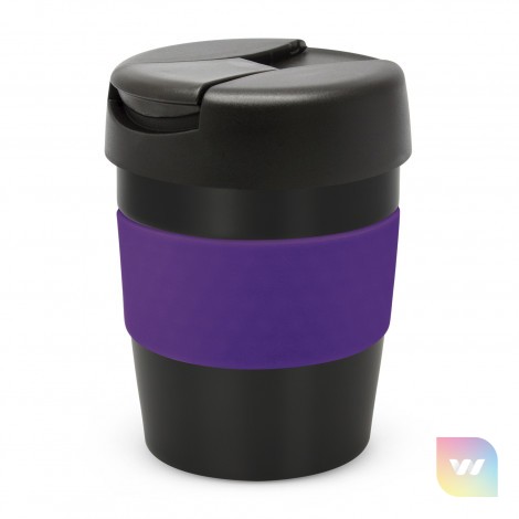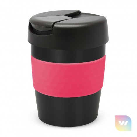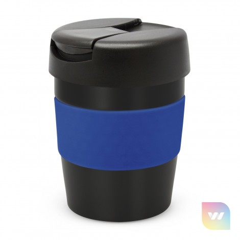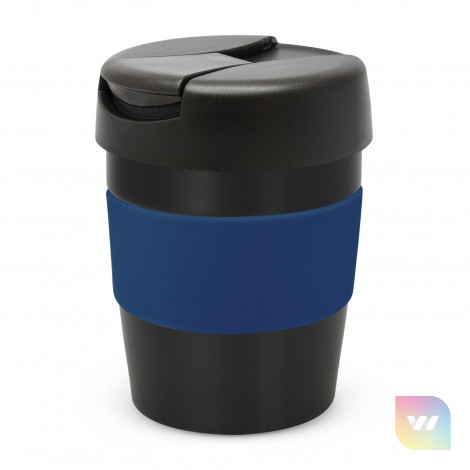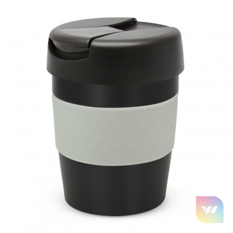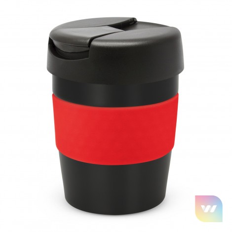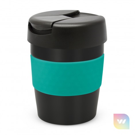 Premium 230ml double wall, vacuum insulated stainless steel cup which will keep drinks hot for up to three hours. It has a soft-touch silicone band and a secure screw on lid with a splashproof flip closure. The cup, lid and band can be mixed and matched in any colour combination from the standard colours at no extra cost. Up to five different colour combinations are included in the price and more are available for an additional charge. Java is BPA-free and is presented in a black gift box. An optional gift tube is available on request. This product is not dishwasher safe and handwashing is recommended.