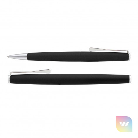 A pen set of rare quality which bears all the hallmarks of the finest LAMY design and quality. It features a twist action ball pen and a rolling ball pen with the choice of brushed stainless steel or heavy brass with matt finishes. These stunning pens feature a unique propeller inspired clip with matching shiny chrome accents. The ball pen has a black LAMY M16 refill with 8000 metres of writing ink and a tungsten carbide ball for improved writing quality. The rolling ball pen has a black LAMY M63 rolling ball refill with 750 metres of smooth writing ink. Studio is 100% made in Germany with the LAMY brand tastefully inscribed on the upper barrel of the ball pen and the cap of the rolling ball pen. Both pens are beautifully presented in a LAMY gift box. The stainless steel barrels laser engrave to a natural etch and the heavy brass barrel laser engraves to a mirror finish.