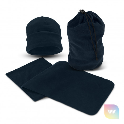 Delightful scarf and beanie set which is manufactured from warm, non-pilling polar fleece and is presented in a matching drawstring bag. The beanie has a roll up cuff and is available in one size which will fit most people.