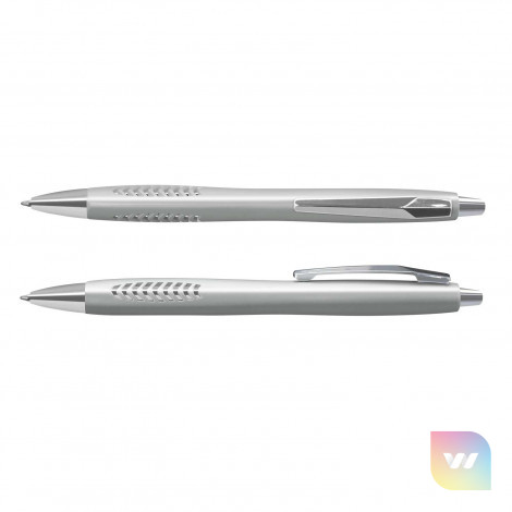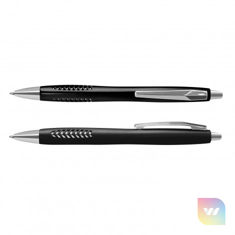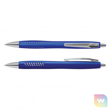 Retractable plastic ballpoint pen with a metallic barrel and shiny chrome trim. Topaz has a comfortable triangular grip with a futuristic chevron pattern that allows the shiny chrome inner barrel to show. It has a blue refill with 1800 metres of German manufactured Dokumental ink and can be presented in an optional pen sleeve.