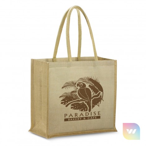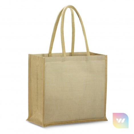 Extra-large laminated juco tote bag with a jute gusset and base which has padded cotton handles. Juco is a versatile and increasingly popular new fabric that is manufactured from a fine blend of natural jute and natural cotton.
