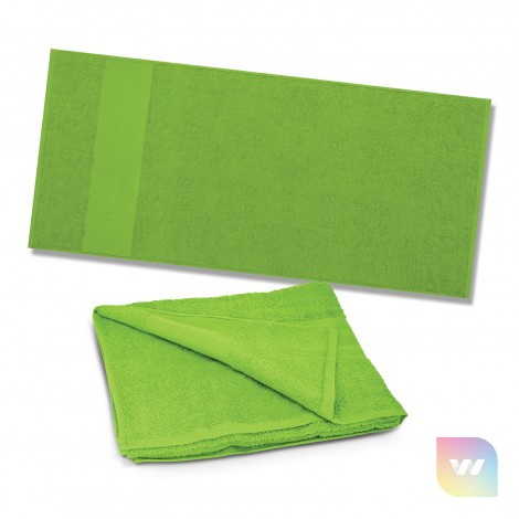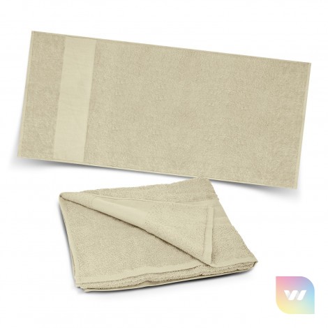 Soft 1350mm x 700mm beach towel which is manufactured from 420gsm cotton terry towelling. It has a smooth fret area for branding.