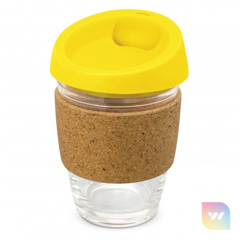 Fashion inspired 340ml reusable glass coffee cup with a secure push on silicone lid and a trendy heat-resistant cork band. Glass is a natural choice for a clean, pure taste and it is a reusable alternative to single-use paper cups. Metro Cup is presented in an unbleached cardboard gift box which has a window to show the branding and product care instructions are printed on one side. An optional gift tube is available for presentation. This product is not dishwasher safe and handwashing is recommended.