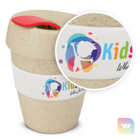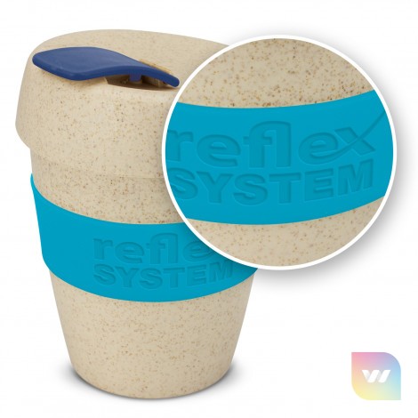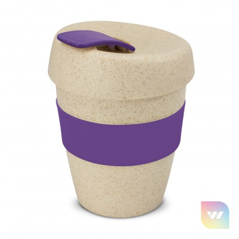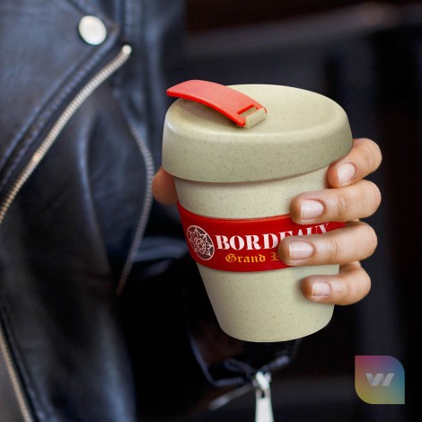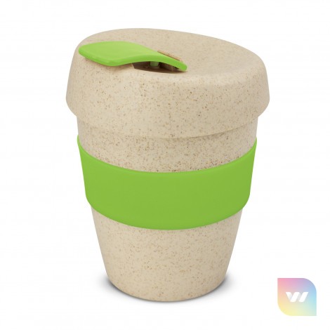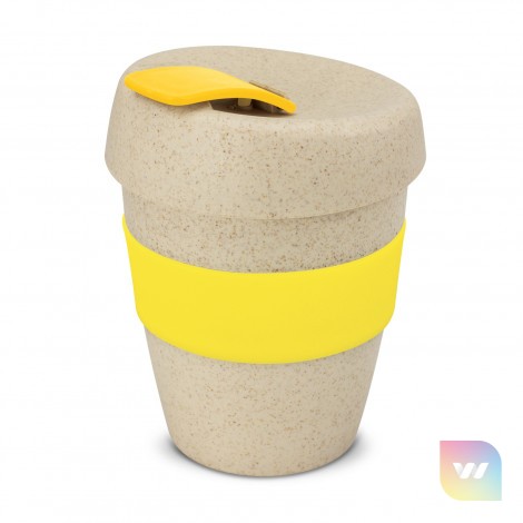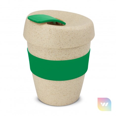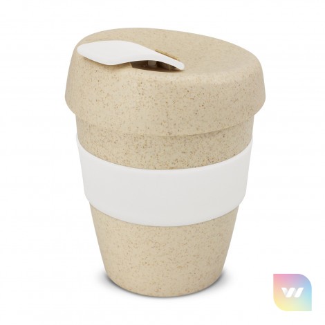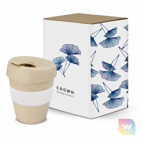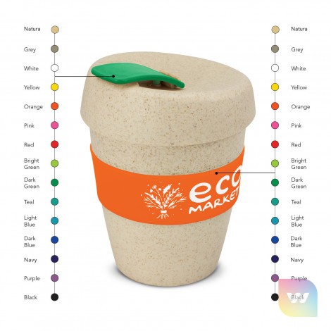 Design inspired 350ml reusable coffee cup that has an incredible story to tell. It is manufactured from a 60/40 blend of BPA-free polypropylene and natural rice husk fibre. It has a heat-resistant silicone band and a secure screw on lid with a splashproof flip closure. The flip closure and band can be mixed and matched in any colour combination from the standard colours. Up to five different colour combinations are included in the price and more are available for an additional charge. An optional natural gift box is available on request. This product is not dishwasher safe and handwashing is recommended. Express Cup - Natural is protected under New Zealand Design Registration No. 419451 and Australian Design Registration No. 361937.