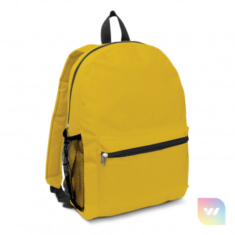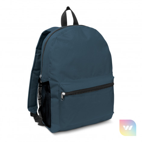 Affordable backpack which is manufactured from 600D polyester. It has a zippered main closure and adjustable woven shoulder straps with padding. Other features include a large zippered front pocket, a woven carry handle and a mesh drink bottle holder.