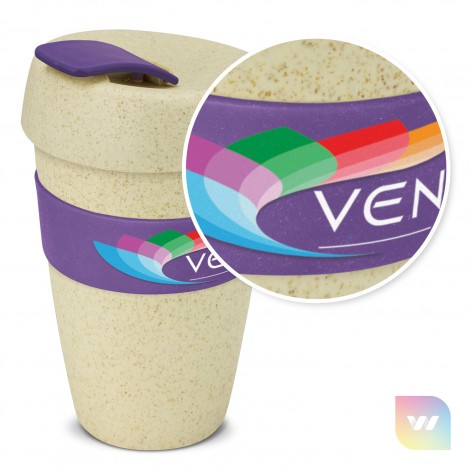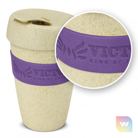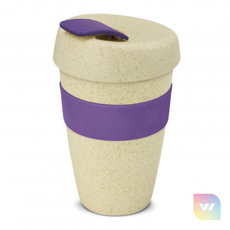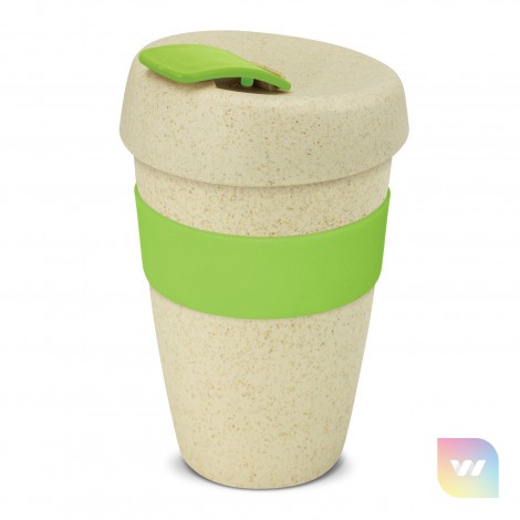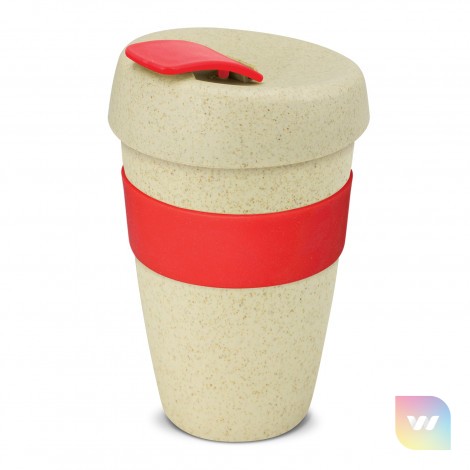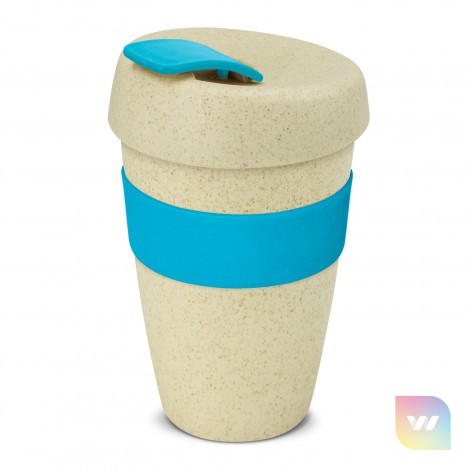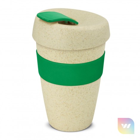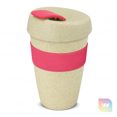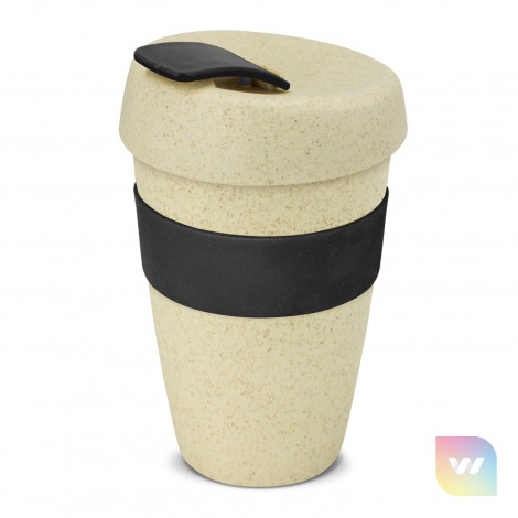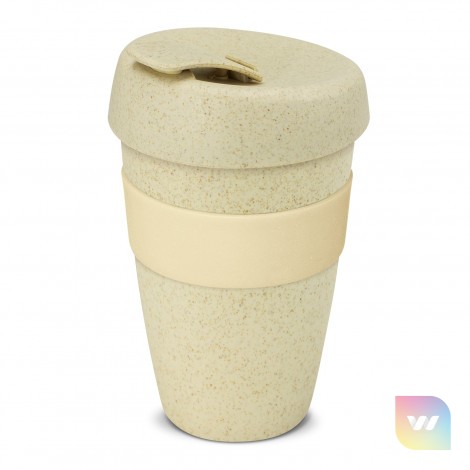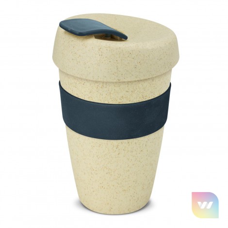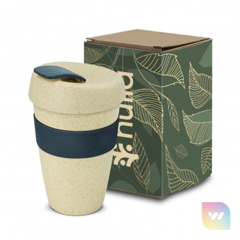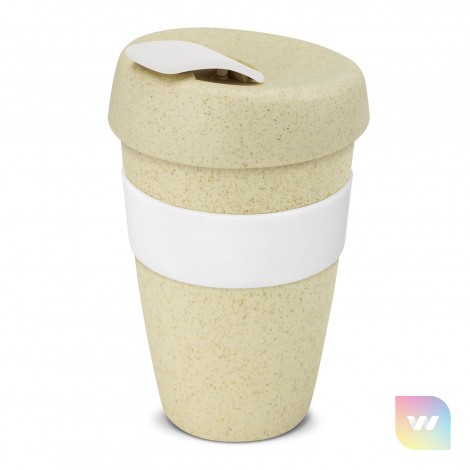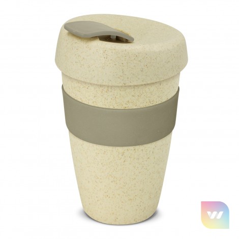 Unique 480ml reusable coffee cup which is manufactured from a 50/50 blend of natural rice husk fibre and BPA-free polypropylene. It has a heat-resistant silicone band and a secure screw on lid with a splashproof flip closure. The flip closure and silicone band can be mixed and matched in any colour combination from the colour palette at no extra cost. Up to five different colour combinations are included in the price and more are available for an additional charge. An optional natural gift box is available on request. This product is not dishwasher safe and handwashing is recommended. Express Cup - Natural is protected under New Zealand Design Registration No. 419451 and Australian Design Registration No. 361937.