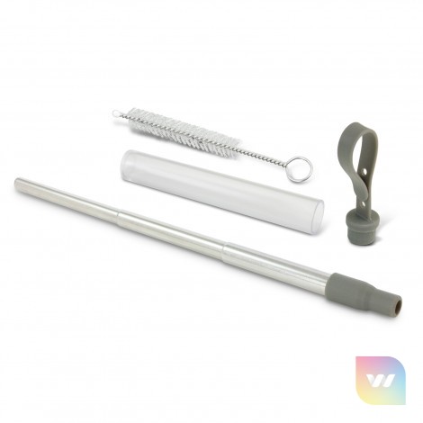 Reusable stainless steel straw with a removable silicone mouthpiece and cleaning brush. The straw telescopically folds down to fit inside its own clear carry tube which seals shut with a silicone stopper. This has an adjustable loop so the carry tube can be attached to a key ring or bag. Steel straws are a reusable alternative to single-use plastic straws and are a great way to send a positive message. Branding is on the case.