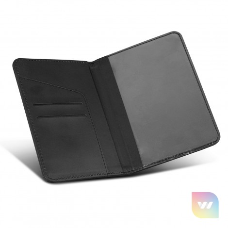 PU passport wallet with 'PASSPORT' debossed on the cover. Designed to protect your passport, the wallet has a clear sleeve to display the photo ID as well as two credit card slots and a sleeve to hold tickets and travel papers.