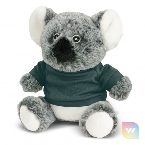 Soft koala plush toy with embroidered eyes, RPET filling and a polyester t-shirt which is available in eleven colours. Plush animals provide a cute and cuddly branding option and are great for brand recognition and spreading goodwill. They have also been manufactured to meet AS/NZS Safety Toy Standards.