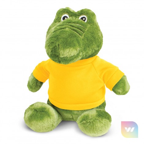Soft crocodile plush toy with embroidered eyes, RPET filling and a polyester t-shirt which is available in eleven colours. Plush animals provide a cute and cuddly branding option and are great for brand recognition and spreading goodwill. They have also been manufactured to meet with AS/NZS Safety Toy Standards.